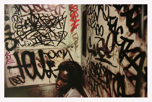 When he started his project on the Boston T in 2005, Colen had seen some isolated examples of the Evans subway photos. He’d also seen Bruce Davidson’s raw, jangling body of work about the New York subway at the height of its graffitti-covered 1970s squalor. He didn’t associate his own work with either, he says, because of Evans’ subterfuge and because Davidson’s work “is so harsh and sad… this is New York City at its absolute bottom.”