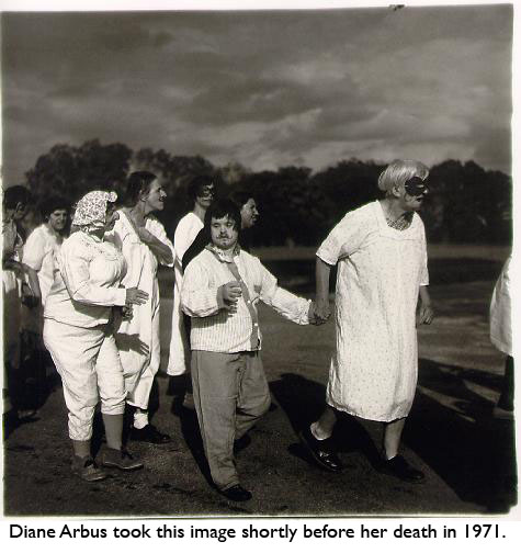 Only twenty-two when she took her life, Woodman had already amassed an impressive body of work. Some of her images seem anguished, others are more playful. Depressed over losing a grant and a boyfriend, she gave way to the darkness that hovers at the edges of her images. Arbus, too, was depressed over a lack of assignments—compounded by the fact that she felt she’d lost her creative drive. In Patricia Bosworth’s 1984 biography