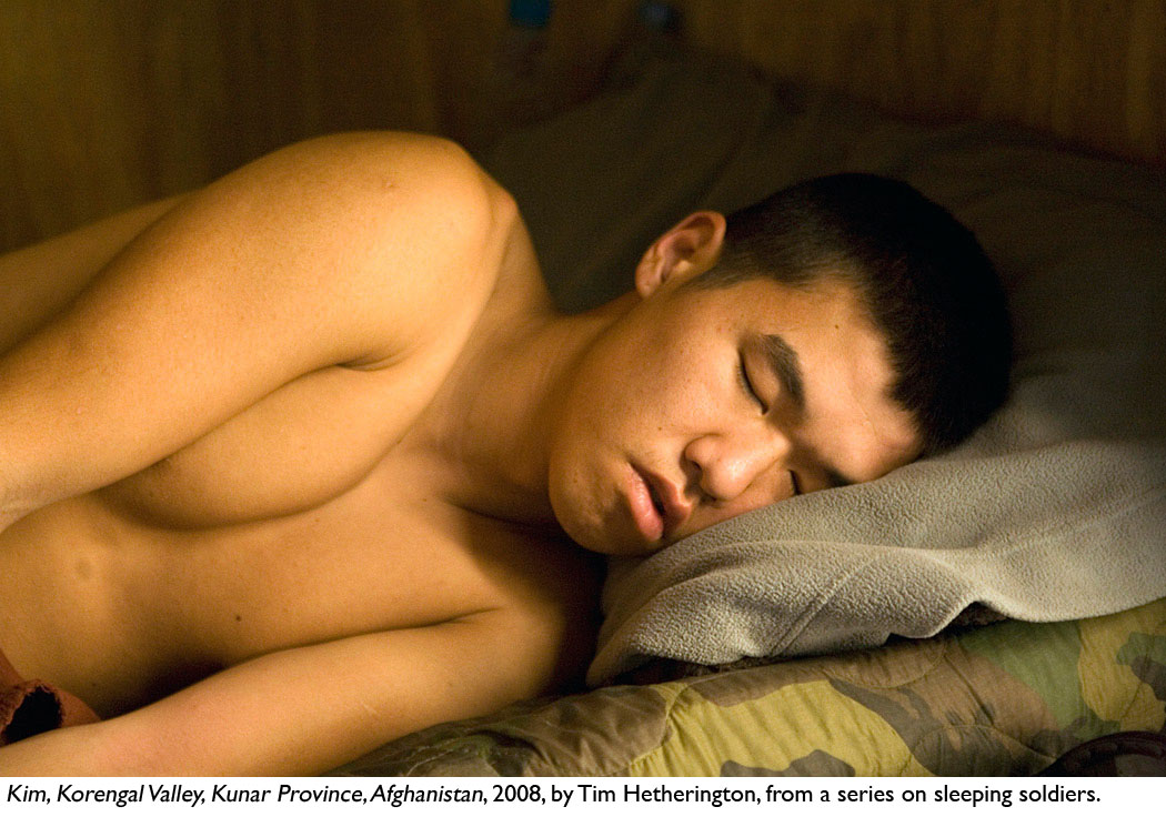 On the flip side of those luminous missed opportunities are the disturbing ones, the images not taken out of a sense of moral duty. Ed Kashi , coming across a horrific road accident in Pakistan, decided “to be there as a human being, not as an observer/documenter.” Similarly, Tim Hetherington writes about a road accident in Liberia that he didn’t photograph, honestly admitting that he was simply too exhausted, “my brain… like a plate of scrambled eggs.” Hetherington, of course, was killed last April in Libya, becoming one of the conflict victims that he was previously conflicted about photographing. An exhibition of his work (including the image below of a sleeping soldier in Afghanistan) goes on display at the Yossi Milo Gallery on April 12th for a month.