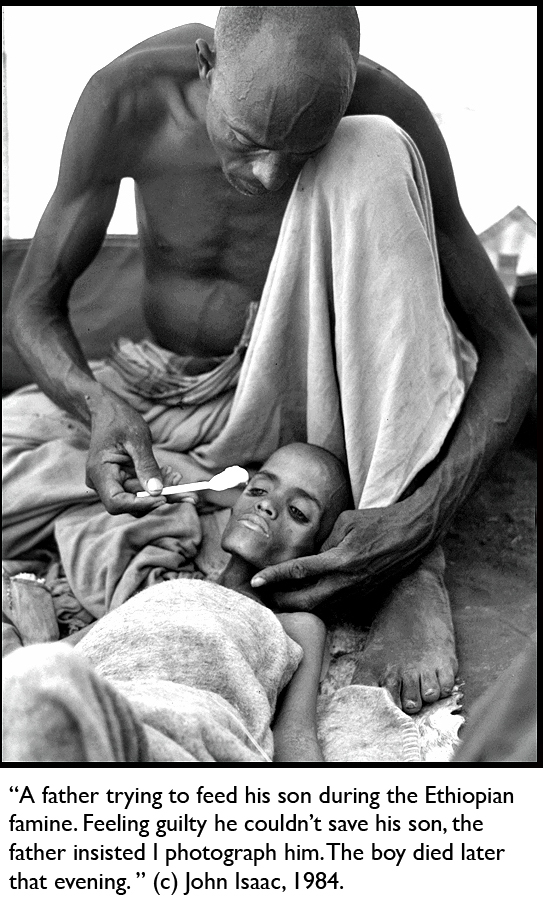 Of course, some would argue that the naked mother’s dignity is a price worth paying if it moves people to action—but John feels the trade-off is too damaging. “My basic philosophy is, whatever would hurt me would hurt someone else,” he says. “I look at the situation and think, I don’t think I’d like to be portrayed like this. I may be right and I may be wrong, but it’s my call and that’s what I’ve done.”