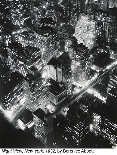 GAH: Oh, she’s my major, major influence. Obviously, anyone who photographs the city lit up at night references her. She’s also the first person I can find who photographed the city from above ground. Her production was so detailed, she timed everything so perfectly.