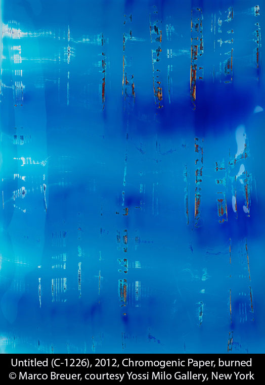 Some of the work is edgy, some of it beautiful. I especially liked Alison Rossiter ‘s delicate abstracts made by dipping expired photo paper into chemicals, and Mariah Robertson’s 100-foot-long hanging scroll of color imagery printed on metallic photo paper. In this setting I even liked some of current art world darling Marco Breuer ‘s scored and melted-emulsion images, which I hadn’t liked on a recent visit to the Yossi Milo Gallery .