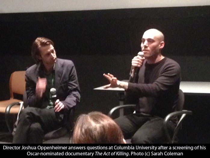 at Columbia University: a hot ticket not only because it was an extended cut of the Oscar-nominated documentary, but because director Joshua Oppenheimer was going to do a Q&A afterward.
