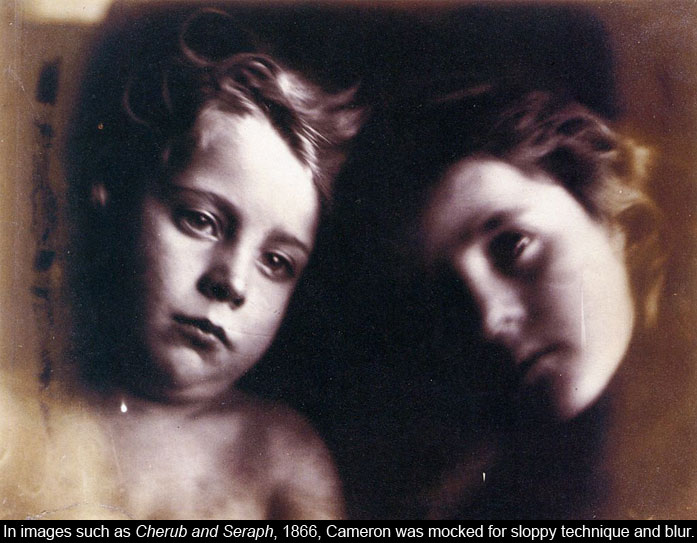 Cameron struggled for a few years before producing a photograph she was proud of, a portrait of Annie Philpot, the niece of a friend of Tennyson’s. With one or two successes under her belt, though, she was off and running. Within a year, in addition to shooting her expressive portraits, she was taking pictures with biblical and allegorical themes. These efforts did not meet with immediate success. The photographic press disparaged her work as technically sloppy and artistically over-reaching. Although Cameron became beloved by the public during her life, she never did win over her critics or become financially successful as a photographer.