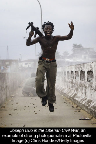 Meanwhile, a poignant portrait of a young girl protesting in Ferguson, Missouri , by Scott Olson, was at the heart of a discussion of visual symbolism at the panel BagNewsSalon: Reading Key Photos of 2014 on the last day of the festival. Assembled by the excellent website BagNews , the panel looked at seven important news images and analyzed their contents. The panelists agreed that the Ferguson image had been effective in putting a face on the story and counterpointing some of the violent, dramatic images from the city. Another photograph, by John Moore, of a doctor discussing Ebola in Liberia, prompted a discussion about the place of aesthetics and editorializations in news imagery. It was generally agreed that, while objectivity might be possible, photographers shouldn’t run away from the aesthetic nature of their craft. However, said New York Times photographer Todd Heisler (whose images are often incredibly beautiful), “content always wins over aesthetics at a newspaper.”