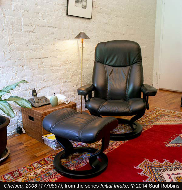 Perhaps that’s why so many New Yorkers flock to therapists’ offices, though results can be decidedly mixed. In fact, How Can I Help? grew out of Robbins’ frustration with his own therapist, whose “bland, mediocre” office environment seemed to reflect the man’s personality. One day, Robbins walked into the office and saw a vase of dead flowers. “To me, that signaled his lack of interest,” he says. Searching for a way to address his frustration, he asked if he could photograph the therapist’s empty chair.