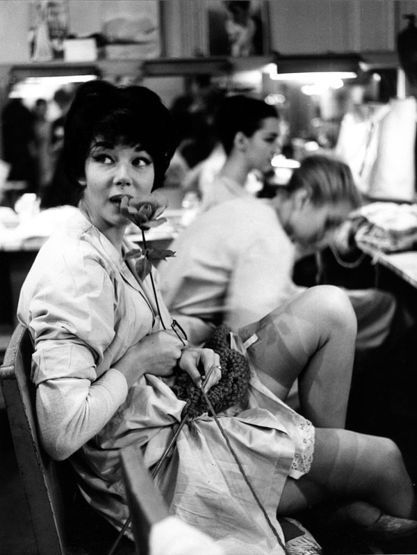 Doisneau was also a master of the written title, and many of his titles serve to add to the humor, or pathos, in an image. In one hilarious image, a well-dressed old gent is observed backstage with a topless showgirl: while she looks into his eyes, he stares fixedly at her breasts. The title— Respectful Homage— is ironic compression at its best. In an image featuring a different kind of gaze, a beret-clad man looks thoughtfully at a pale calf’s head hanging outside a butcher’s shop. By titling the image The Innocent, Doisneau gives it a poignant, almost biblical, undertone.