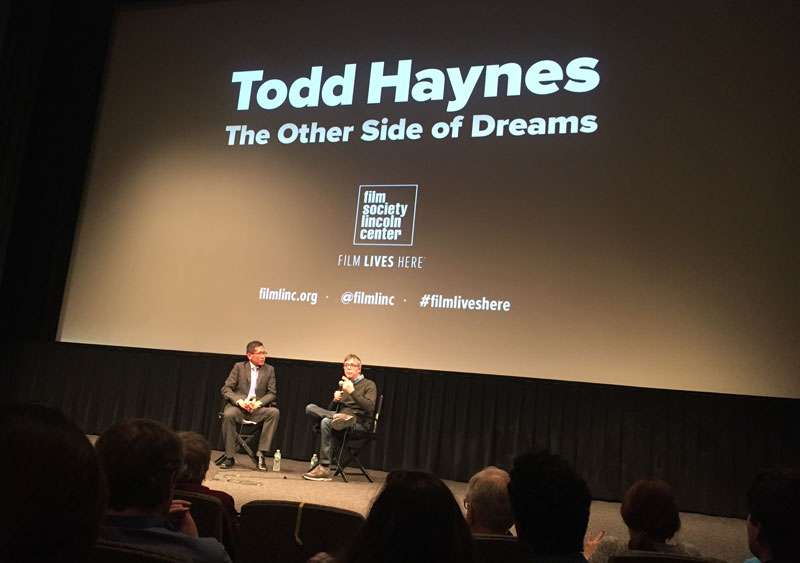 Todd Haynes (right) with Dennis Lim, Director of Programming for the Film Society of Lincoln Center. Photo (c) Sarah Coleman