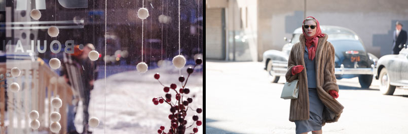 Similar color palette: An image by Saul Leiter (left) and a still from Carol (right).